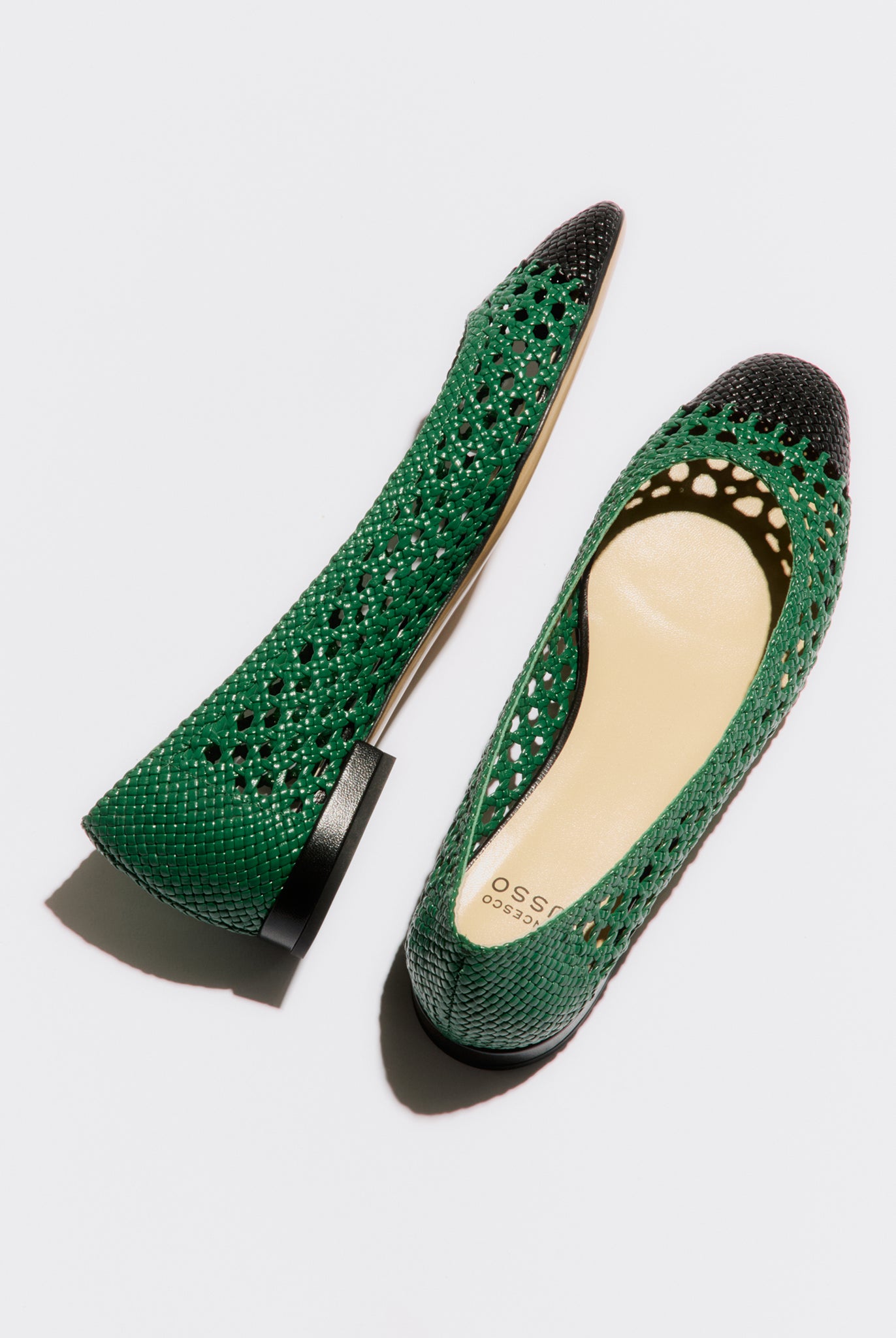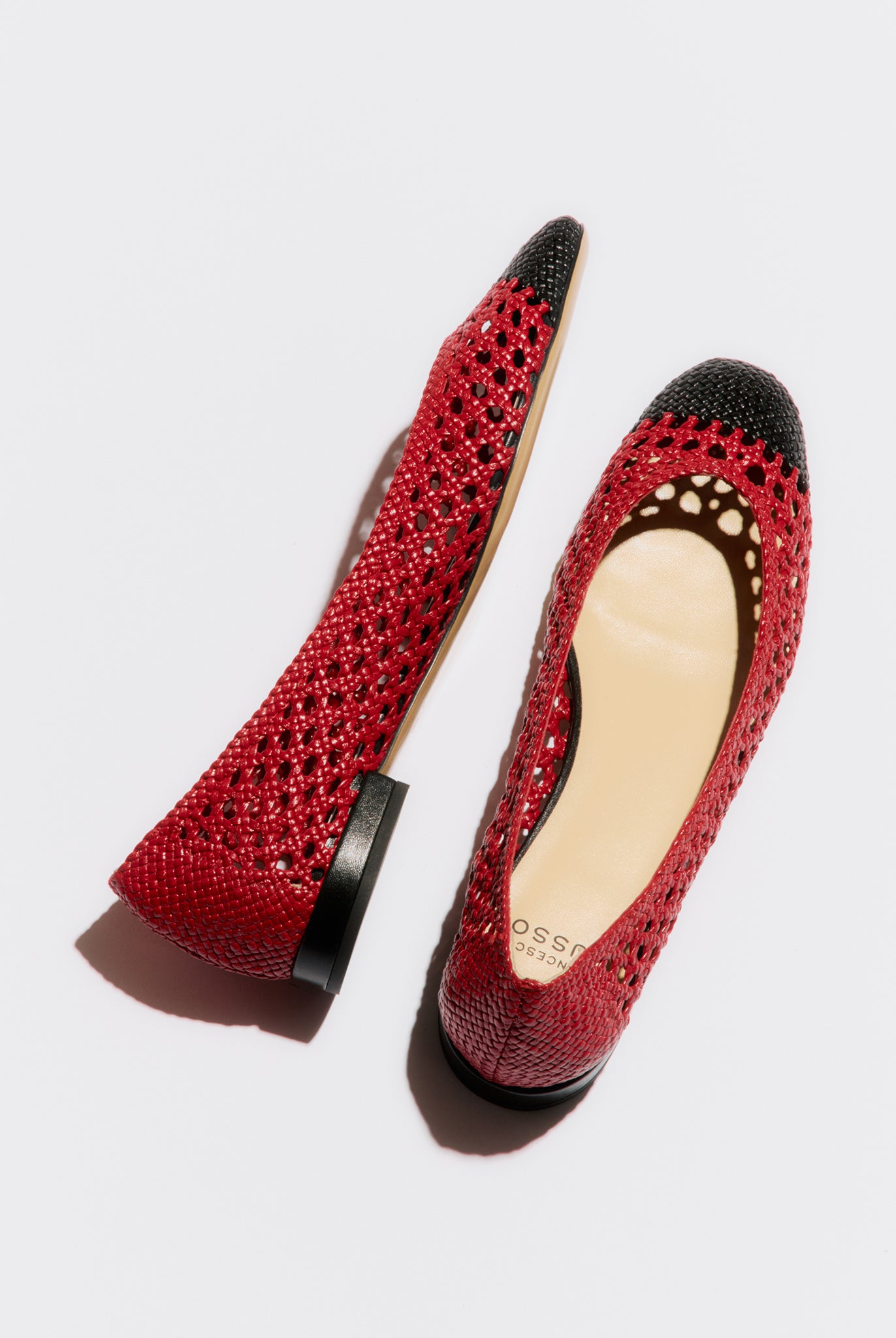 A reinterpreted classic with a daring essence, the low vamp ballerinas portray sensuality by showing just the right amount.