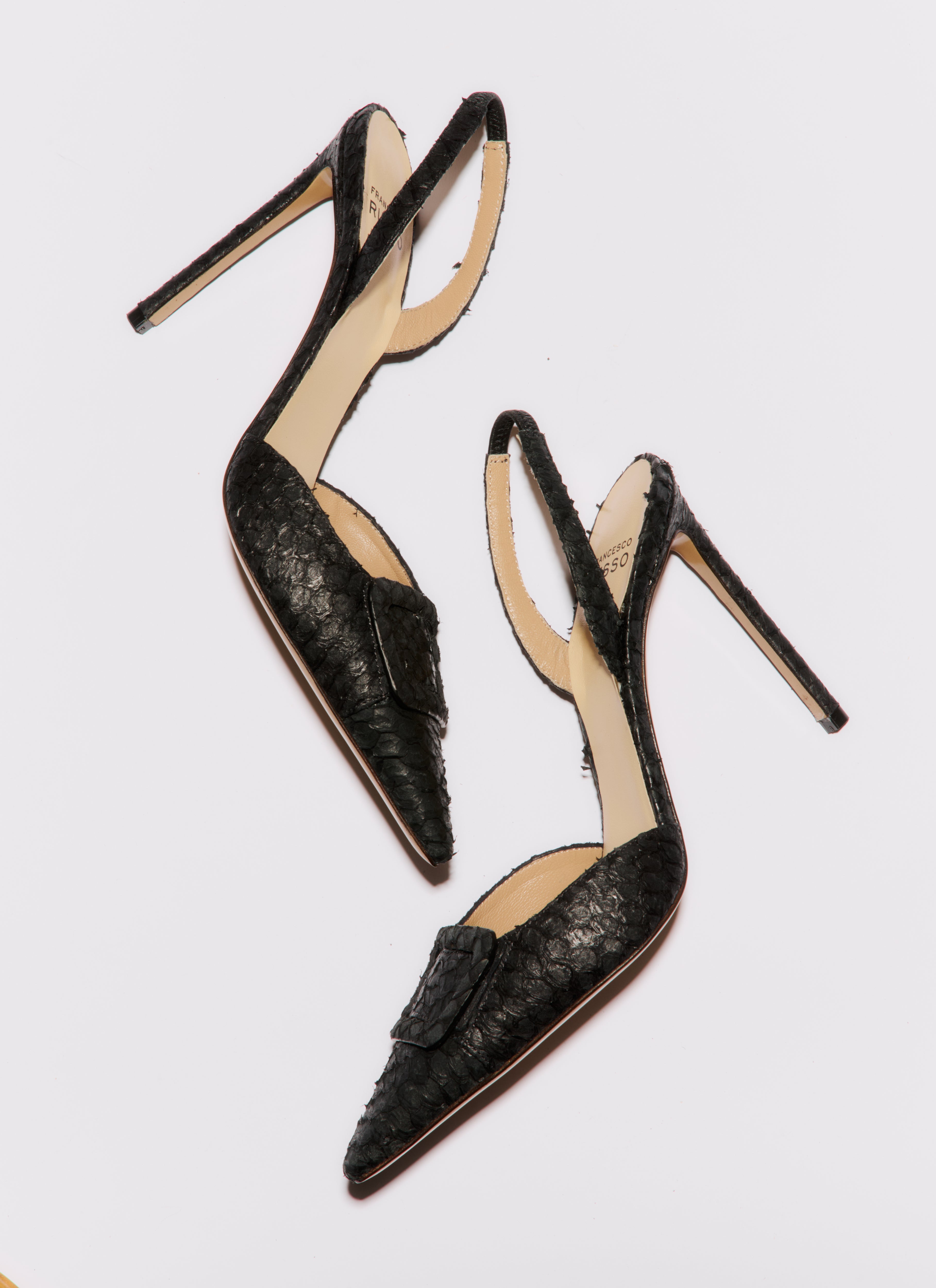 Composition: Upper 100% Watersnake Leather, Lining 100% Kid Leather, Sole 100% Leather. Made in Italy.