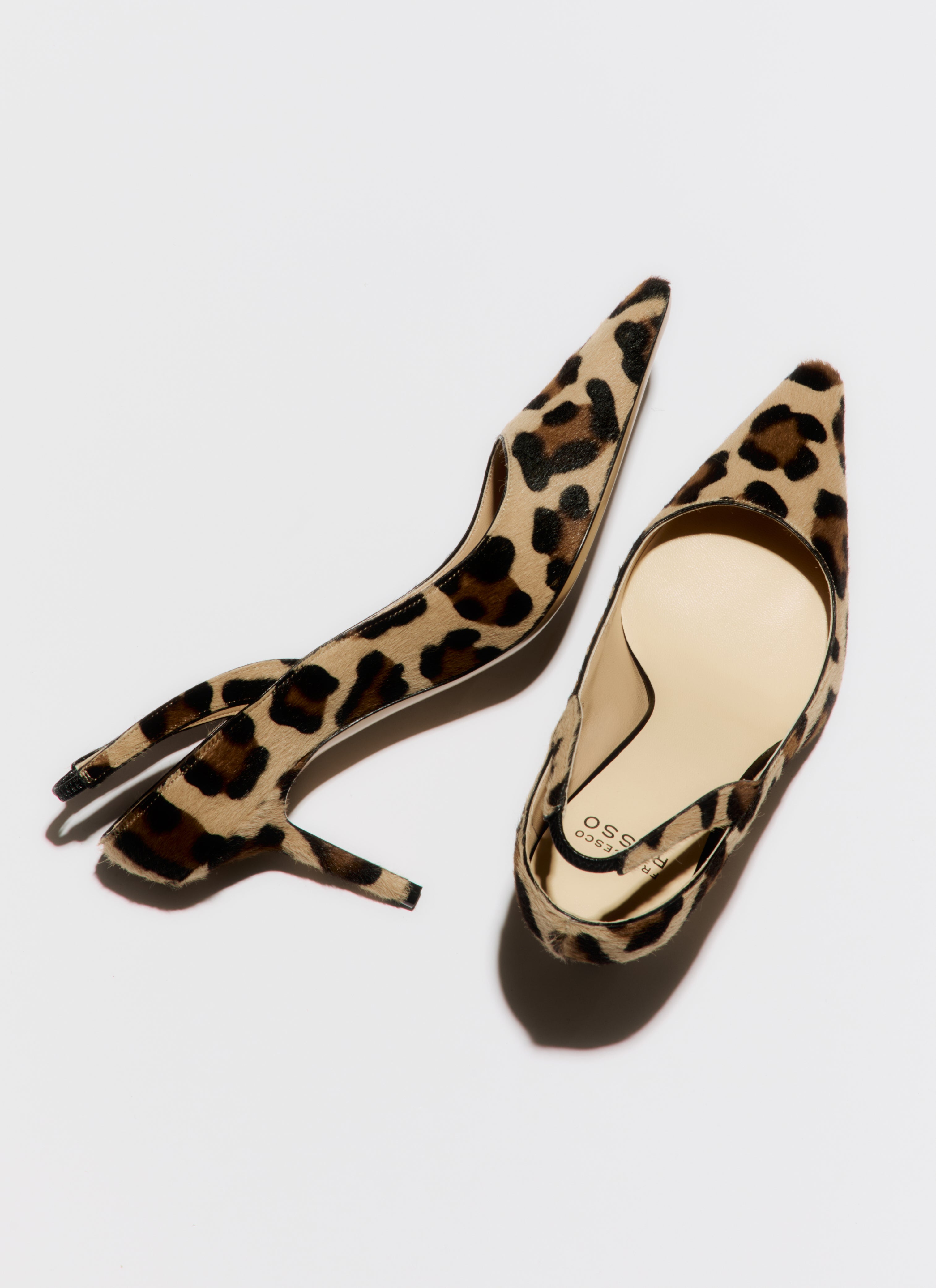 Open back pump in printed haircalf leopard pony, heel height 75mm.