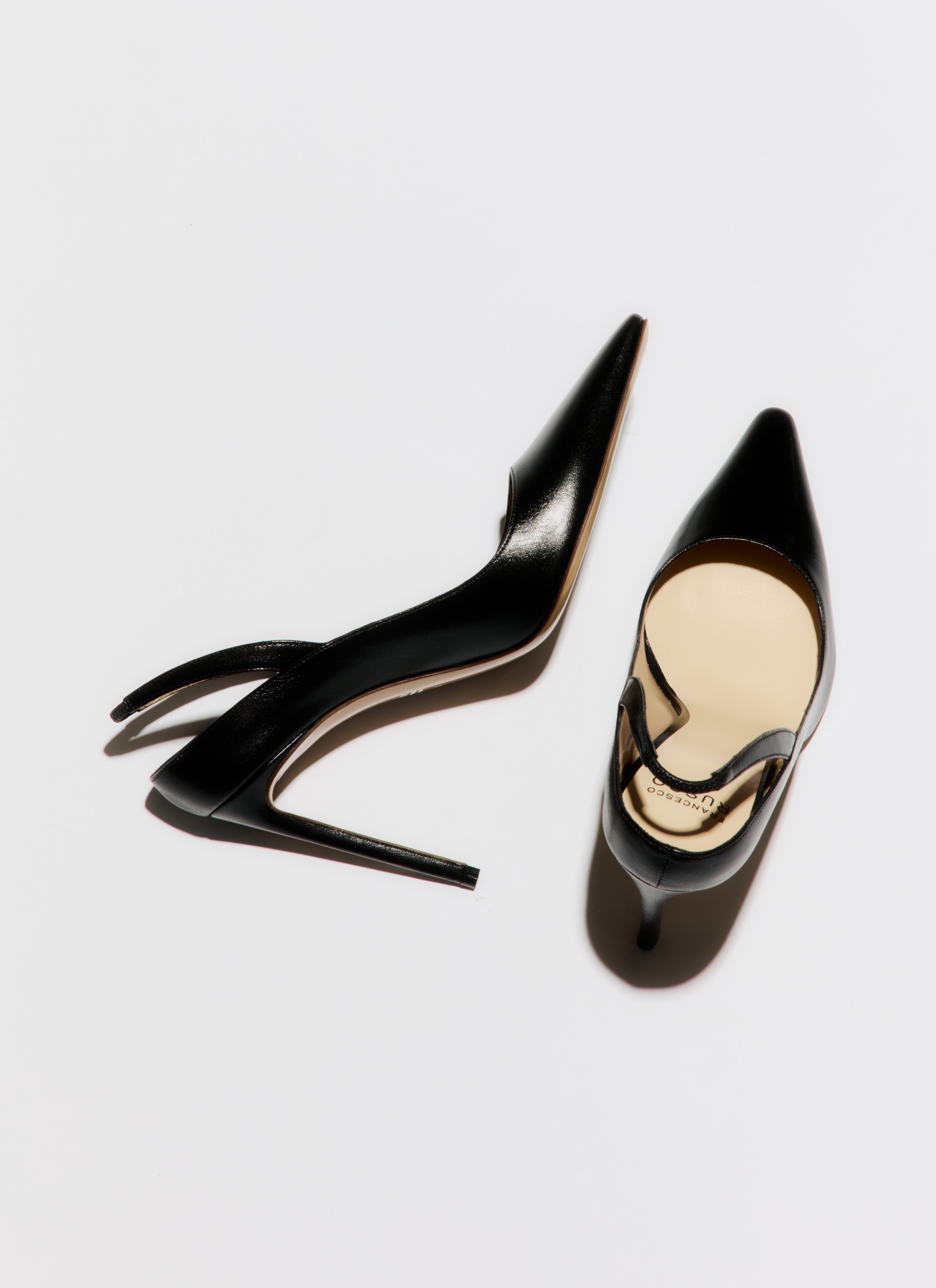 Open back pump in kid leather, heel height 105mm.