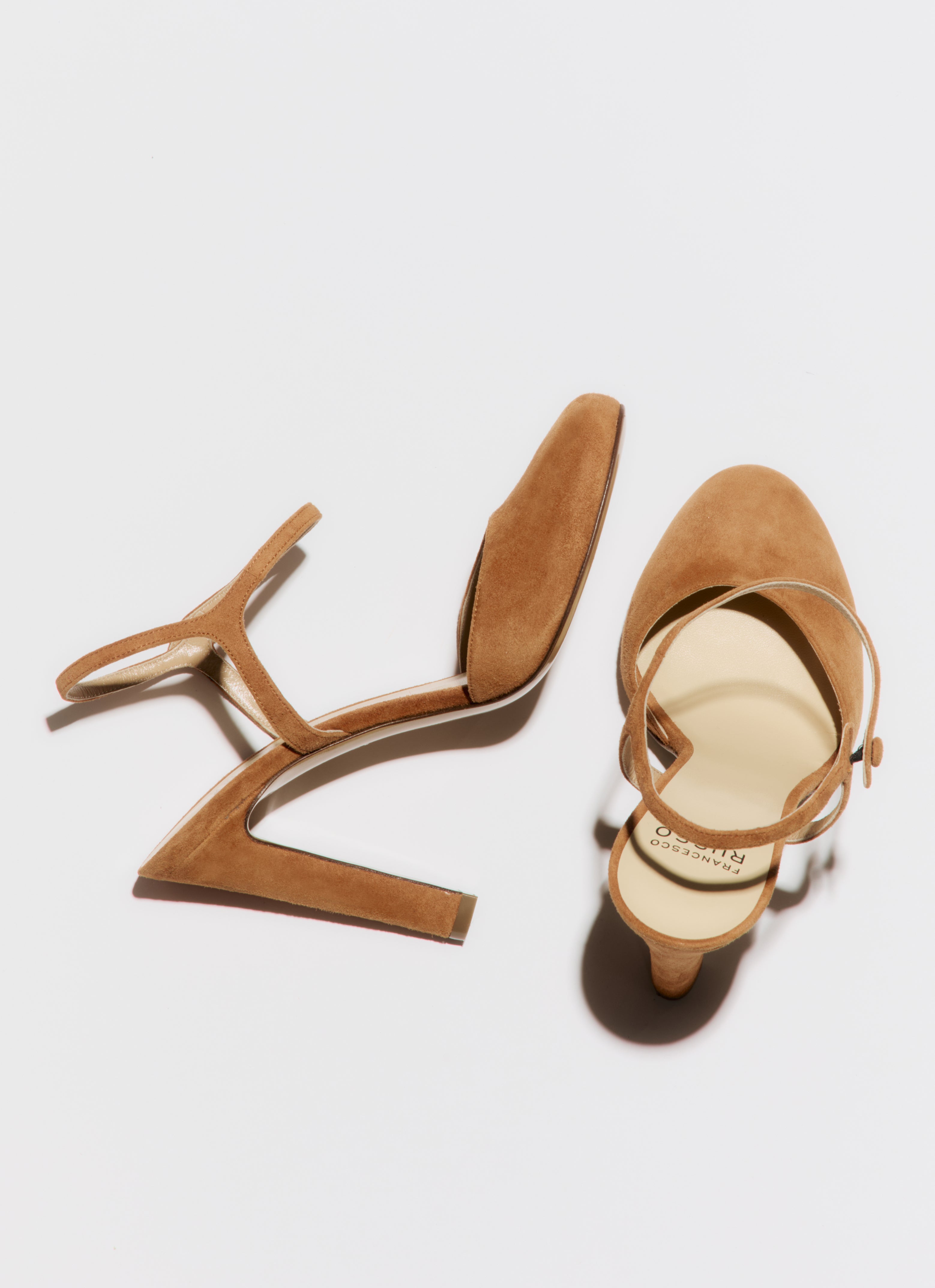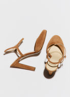 Round toe Mary Jane pump in suede leather, column heel height 105mm.