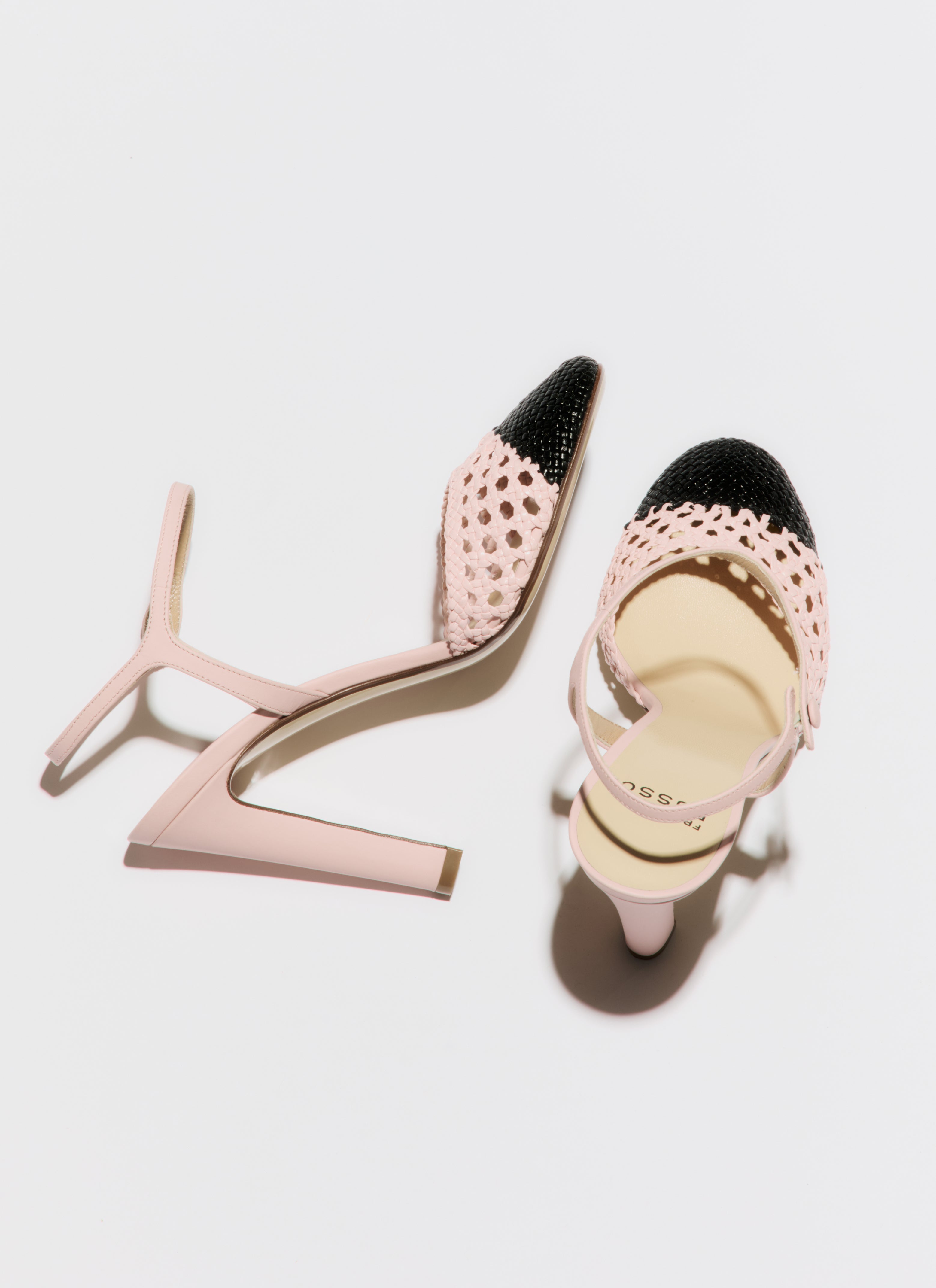 Crocheted two tones Mary Jane pump in black/pink kid leather, heel height 105mm.