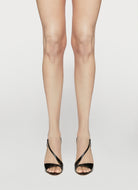 Asymmetrical peep toe sling back sandal in patent leather, heel height 105mm.