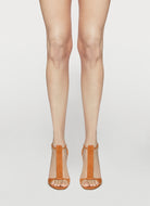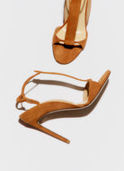 T-bar sandal with covered elastic in suede leather, heel height 105mm.