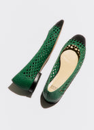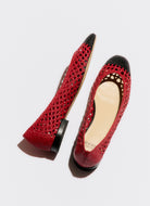 Crocheted two tones ballerina in kid leather, heel height 10mm.